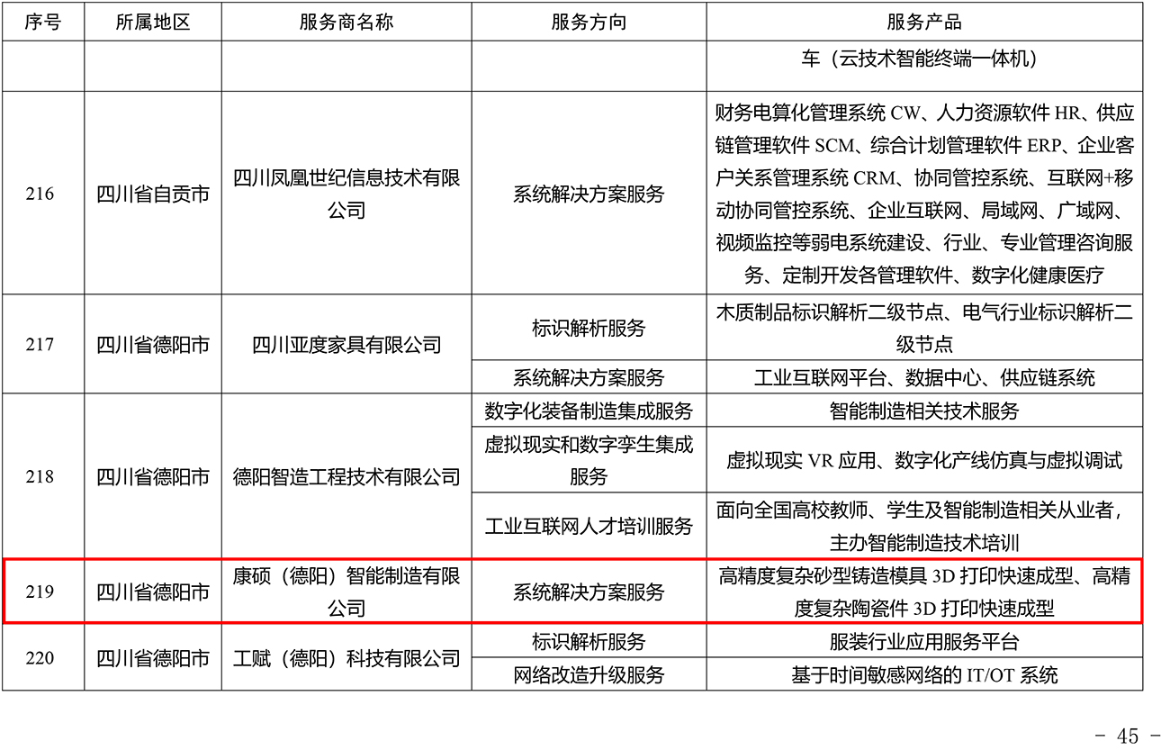康碩(德陽)智能制造有限公司入選2022年成渝地區工業互聯網及智能制造資源池服務商