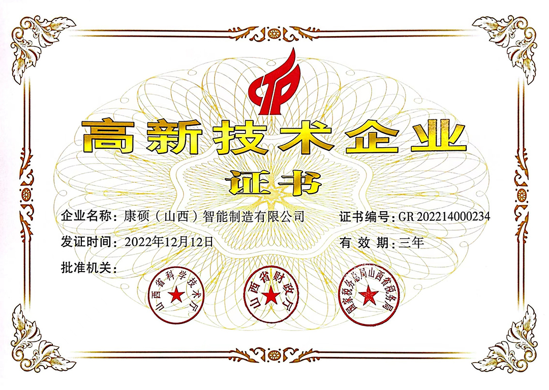 喜報(bào) | 康碩(山西)智能制造有限公司榮獲“高新技術(shù)企業(yè)證書(shū)”