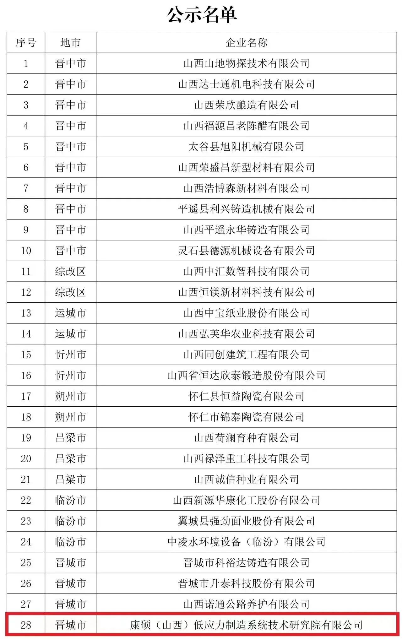 近日,山西省小企業(yè)發(fā)展促進(jìn)局對(duì)2023年惠企政策獎(jiǎng)補(bǔ)名單進(jìn)行了公示。其中,擬對(duì)我司“康碩(山西)低應(yīng)力制造系統(tǒng)技術(shù)研究院有限公司”予以“來山西注冊(cè)經(jīng)營”資金獎(jiǎng)勵(lì)。