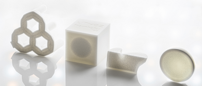 △具有致密到多孔結構的陶瓷3D打印樣件,可適用于各種領域的應用,例如催化劑、過濾器或骨骼植入物等應用
